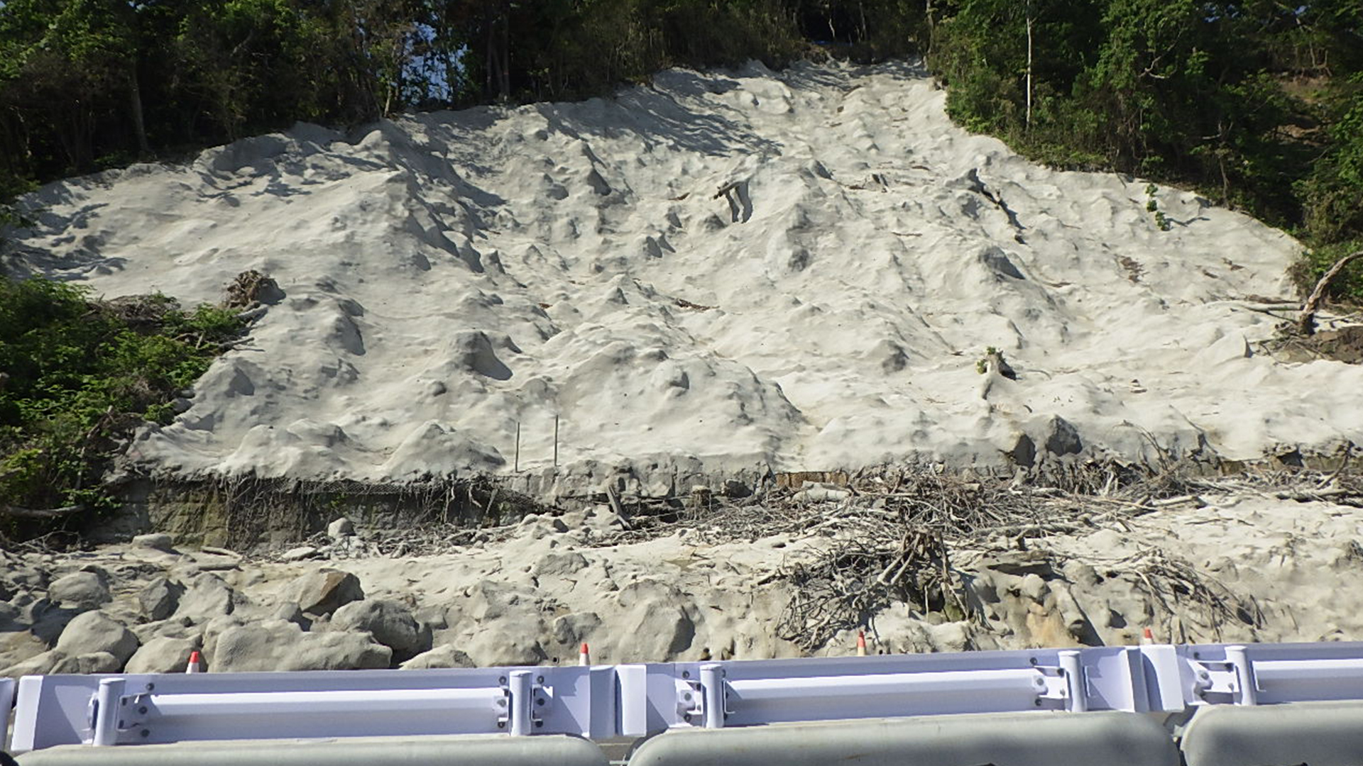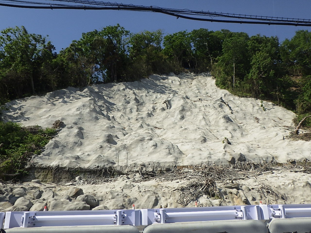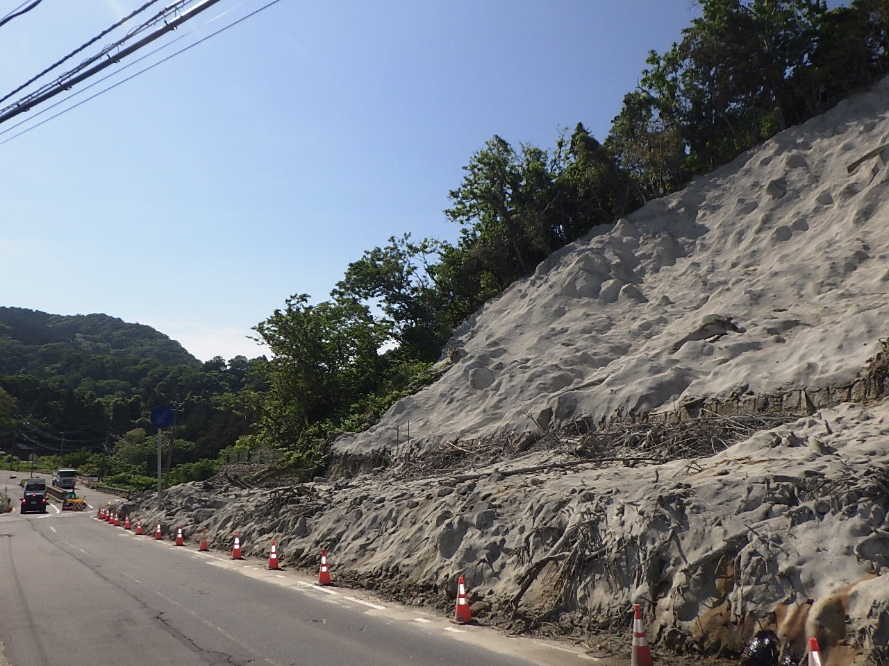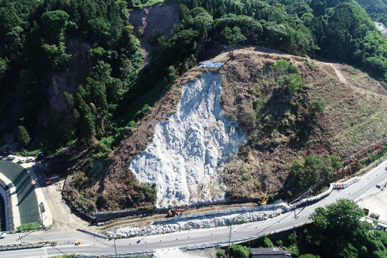 8月上旬時点の進捗状況です。 復旧作業の前準備である仮設工が終わり、これより本格的に復旧作業に入ります。