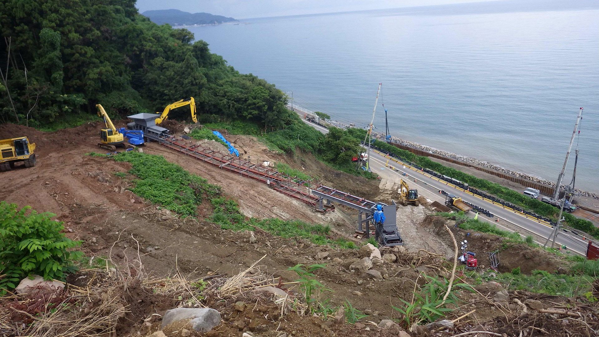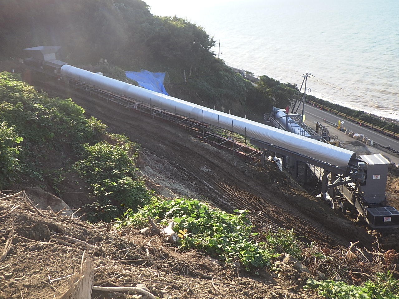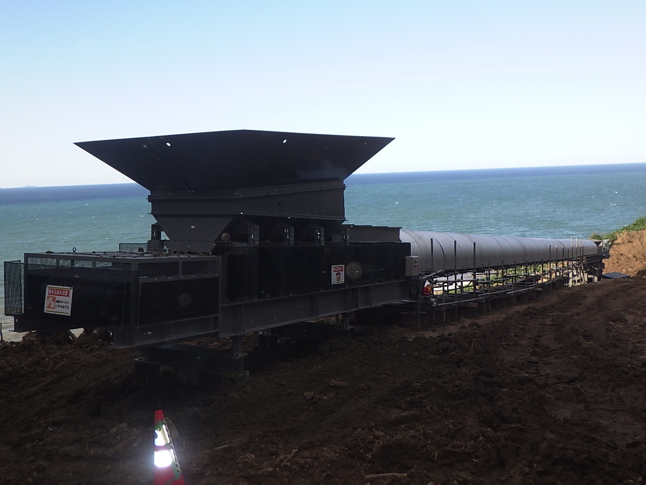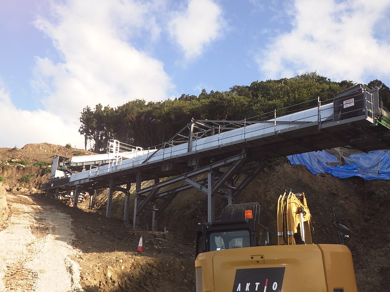 10月上旬時点の進捗状況です。 ベルトコンベア設備の設置が完了しました。